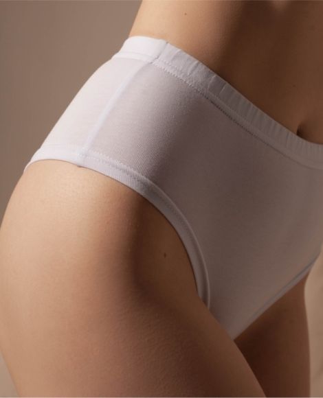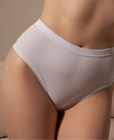 Трусы женские типа Бразильяна, с высокой посадкой и открытой ластовицей. Анатомический шов по задней части изделия.