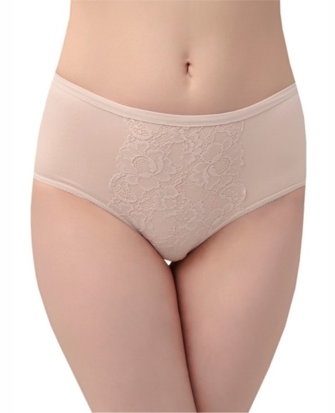 Трусы женские модель Макси "Линда" с высокой линией талии, со средней высотой бока, комфортная закрытая посадка по ягодицам, по ножкам ажурная резинка, в центре вставка из эластичного кружева в тон ткани.