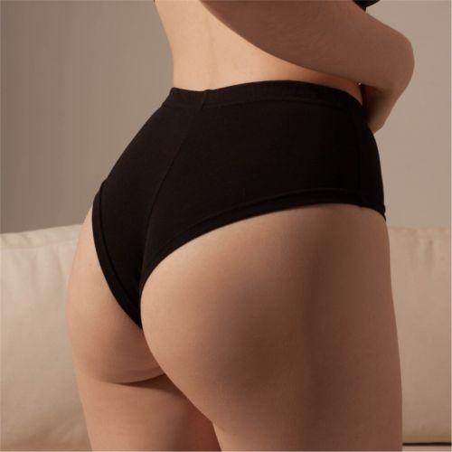 Трусы женские типа Бразильяна, с высокой посадкой и открытой ластовицей. Анатомический шов по задней части изделия.